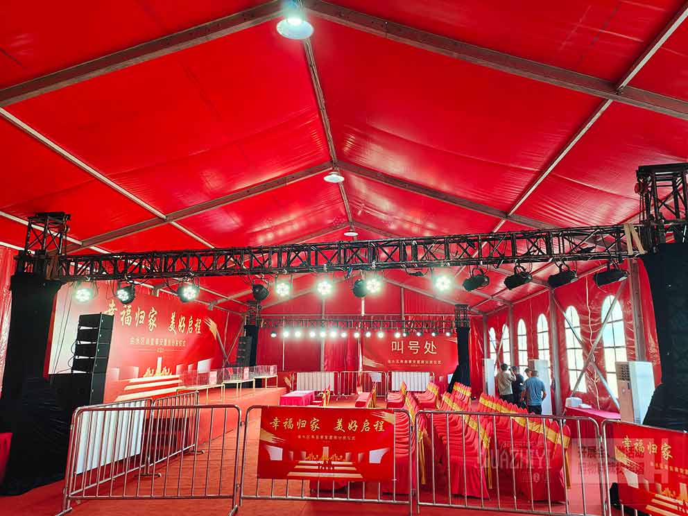鄭州婚慶篷房出租公司還可以根據(jù)新人的需求,量身定制各種篷房方案。無論是風(fēng)格、顏色還是尺寸,都可以根據(jù)新人的喜好進(jìn)行調(diào)整,確保每一場婚禮都能達(dá)到最完美的效果。