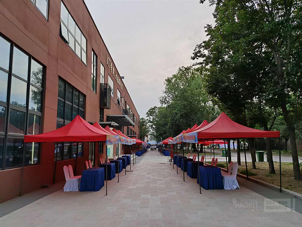 鄭州篷房出租廠家的專業團隊還為雙選會現場提供了全方位的服務支持。從篷房的搭建、布置到后期的拆除、清理,華熠都嚴格把控每一個細節,確保整個活動的順利進行。同時,華熠現場人員還為現場提供了專業的照明、音響等設備,讓雙選會現場的氣氛更加熱烈、溫馨。