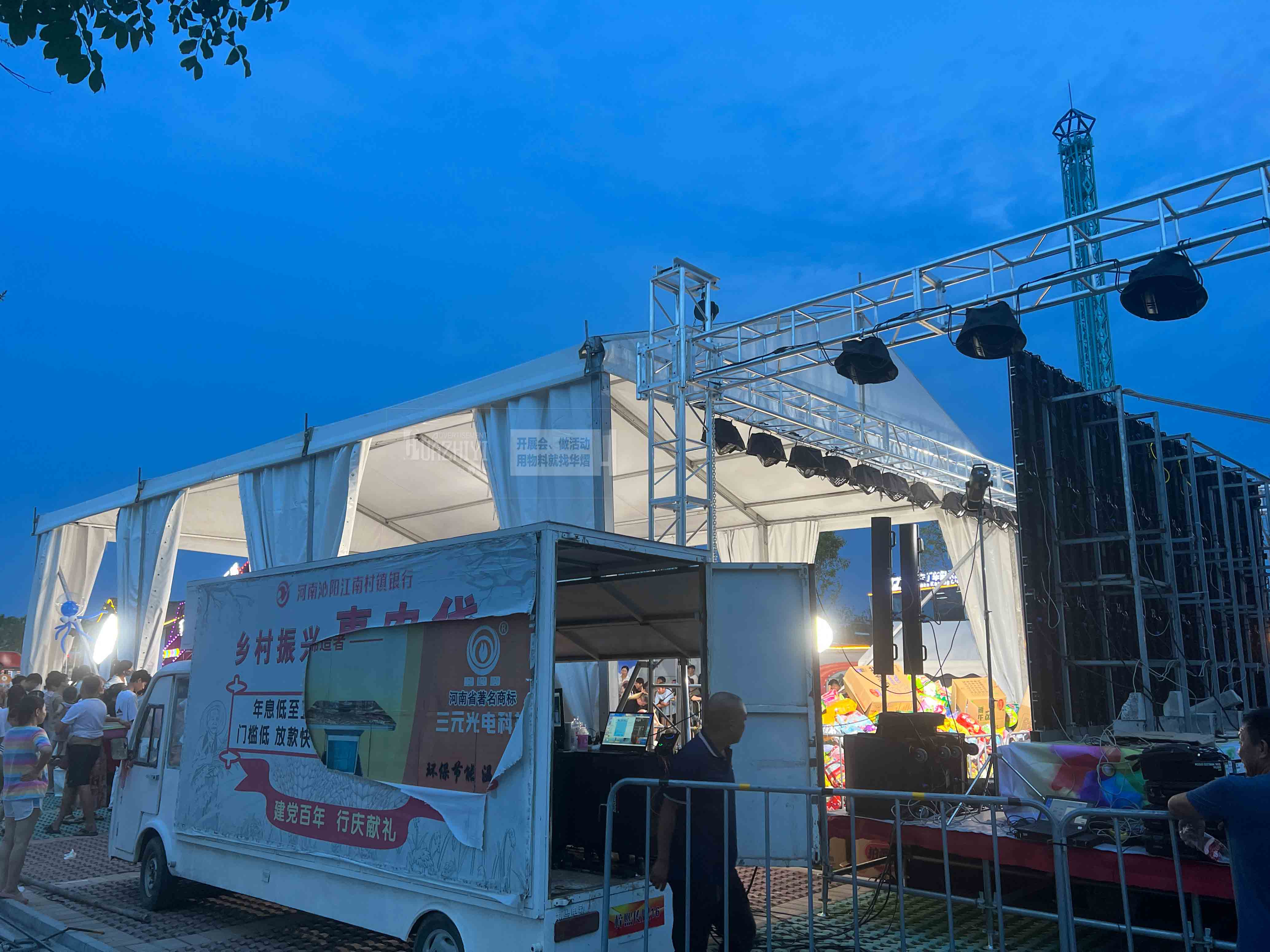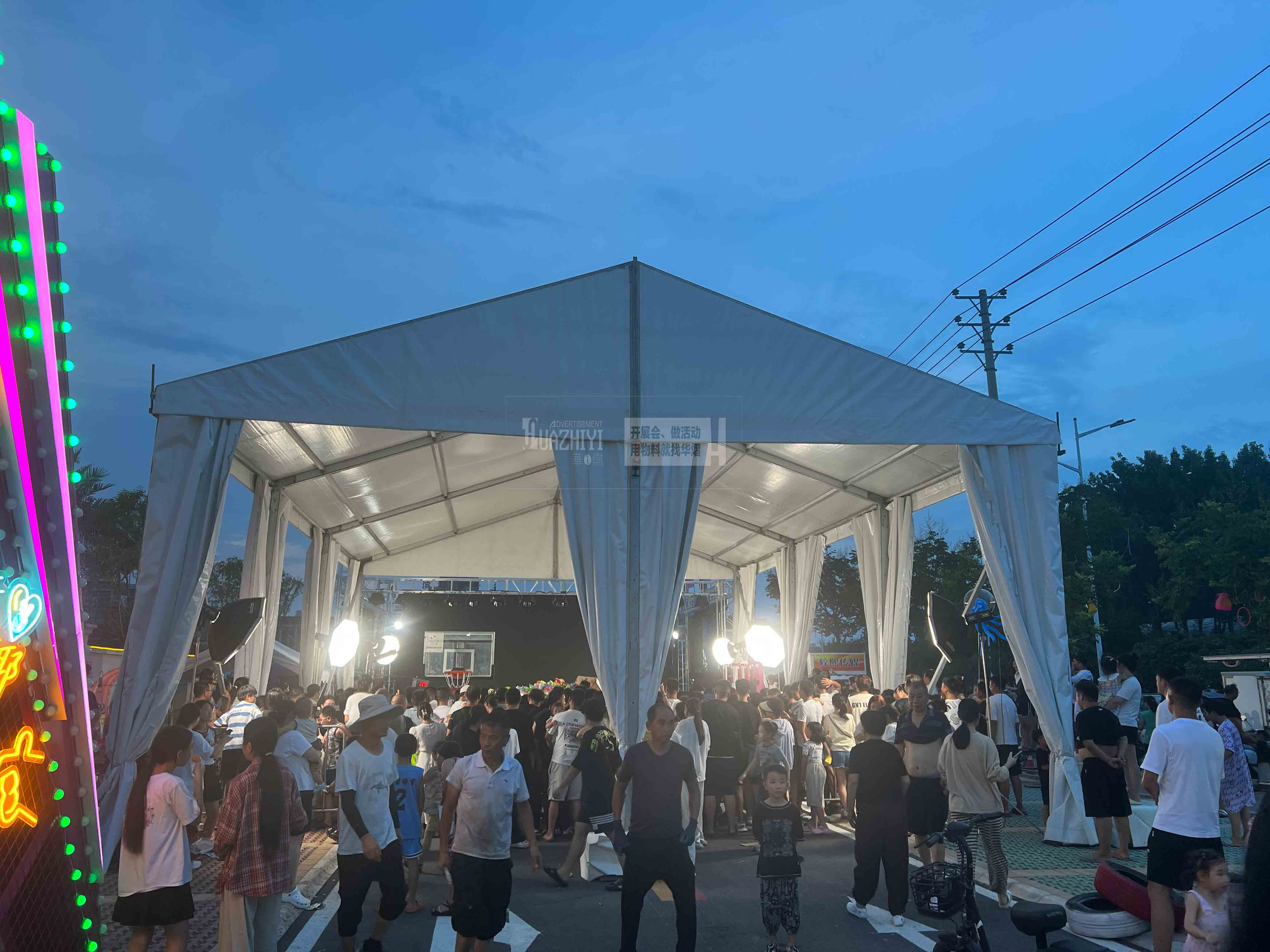 此外,鄭州華熠婚慶篷房租賃公司還提供專業的燈光架租賃服務,我們能夠根據新人的需求和喜好,進行個性化的燈光設計。無論是浪漫的燭光晚餐,還是激情四溢的派對舞會,都能通過燈光的巧妙運用,營造出更為適宜的氛圍。