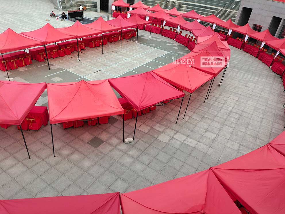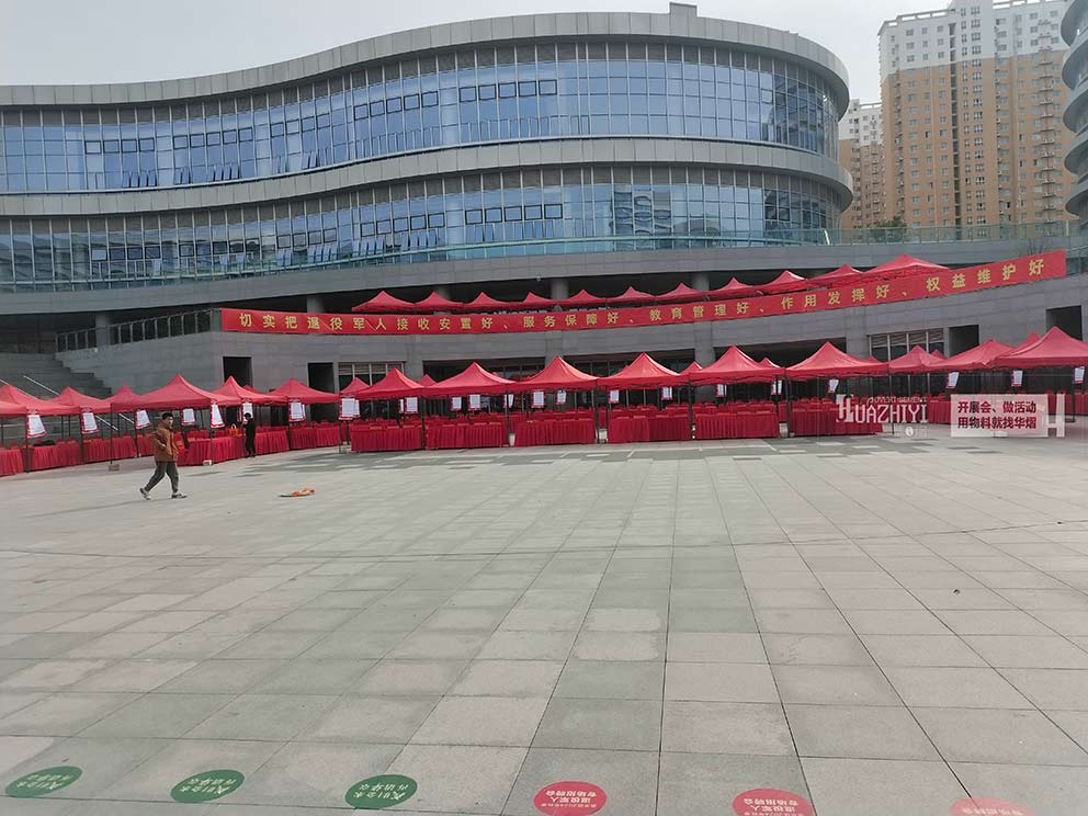 鄭州帳篷廠家助力金水區退役軍人招聘會搭建數頂紅色簡易帳篷。在華熠優質的帳篷產品和服務下,預祝招聘會順利舉行!