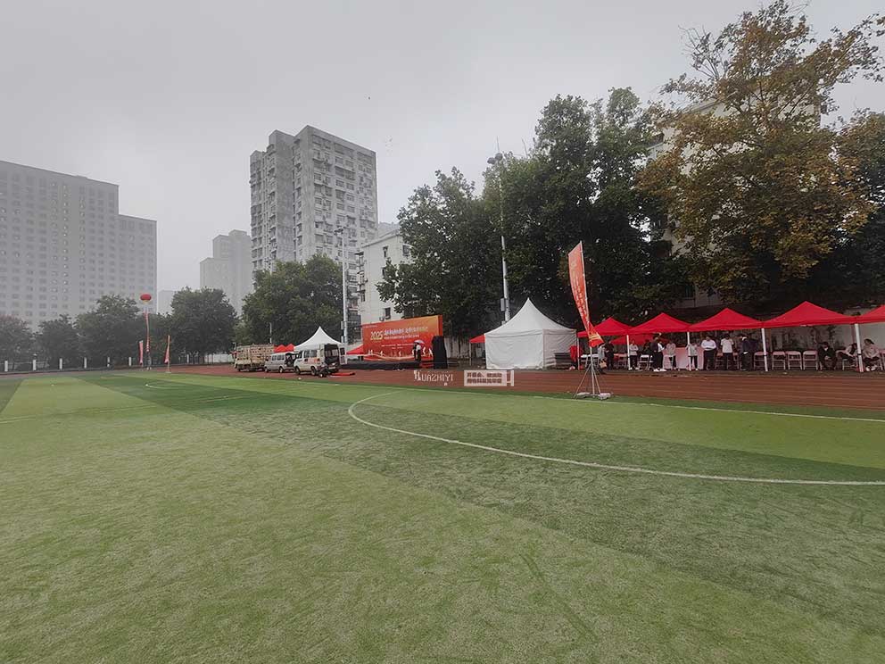 平頂山篷房租賃精準把握中國農業發展銀行湖北分行職工運動會的活動特性,以尖頂篷房、折疊帳篷、桁架、折疊椅、道旗等物料,通過科學布局為運動會打造出“功能清晰、氛圍熱烈、服務周全”的場地空間,助力活動有序開展。 平頂山篷房租賃巧妙運用色彩與造型的搭配,讓篷房成為運動會現場的視覺亮點。白色尖頂篷房選用高密度PVC篷布,單頂直徑5米、高度4.5米,造型輕盈雅致,主要分布在場地核心區域。紅色折疊帳篷則采用醒目亮眼的紅色牛津布頂篷,3米×3米的規格靈活便捷。 桁架、折疊椅、道旗等物料的協同配合,為運動會提供了全方位的功能支撐。桁架搭建在運動會場地中心,表面覆蓋印有“中國農業發展銀行湖北分行職工運動會”字樣的噴繪布。折疊椅輕便實用,布置在白色尖頂篷房內的休息區與賽事觀禮區。道旗則沿運動場周邊道路兩側整齊排列,印有農發行logo,3.5米的高度在風中舒展,形成引導人流、烘托氛圍的“動態風景線”。 平頂山篷房租賃為中國農業發展銀行湖北分行職工運動會打造了一套全方位的布場方案。這套方案既滿足了運動會對功能分區、氛圍營造的需求,又充分考慮了職工的參與體驗,讓運動會在熱烈有序的氛圍中展現團隊凝聚力。