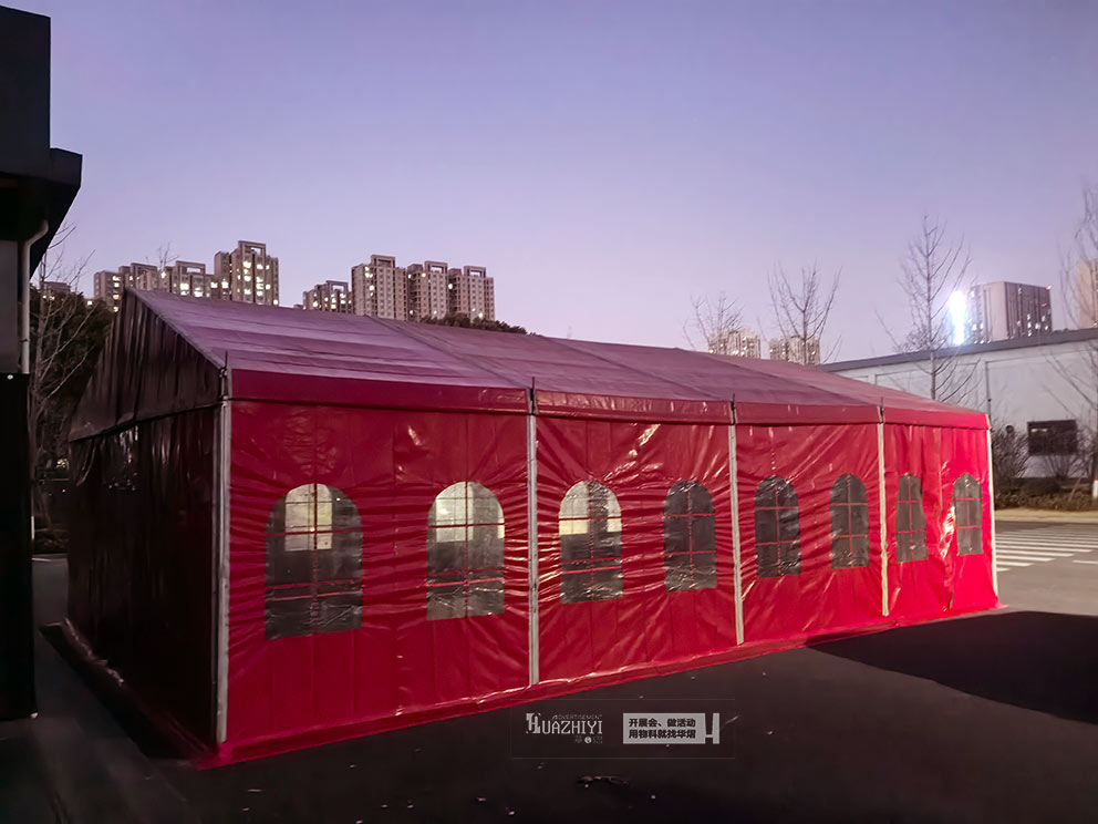 濟(jì)源篷房租賃深入洞察年貨節(jié)的民俗屬性與消費(fèi)心理,精選紅色篷布打造核心展示空間。紅色作為新春的經(jīng)典象征,承載著吉祥喜慶的美好寓意,與年貨節(jié)的熱鬧氛圍完美契合,紅色篷房成為年貨節(jié)最亮眼的視覺標(biāo)識(shí),瞬間拉滿年味。篷房采用經(jīng)典人字形設(shè)計(jì),線條流暢大氣,搭配紅色篷布的濃郁色澤,既彰顯傳統(tǒng)年味,又不失規(guī)整質(zhì)感,讓市民在采購(gòu)過(guò)程中沉浸式感受新春的喜慶氛圍。