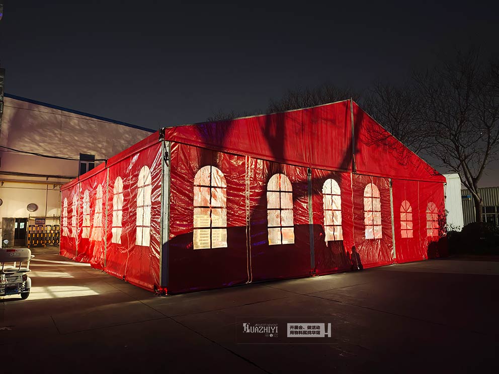 此次搭建的紅色篷房主體框架選用高強(qiáng)度鋁合金材質(zhì),經(jīng)過(guò)精細(xì)加工與加固處理,結(jié)構(gòu)穩(wěn)固抗風(fēng),能從容應(yīng)對(duì)戶外復(fù)雜天氣,為商戶貨物與市民安全筑牢保障。篷布選用防水防曬的PVC刀刮布,不僅色澤飽滿持久,還具備良好的隔熱、通風(fēng)性能,確保篷房?jī)?nèi)環(huán)境舒適,即便在寒冷天氣也能為市民提供溫暖的采購(gòu)空間。同時(shí),篷房?jī)?nèi)部無(wú)立柱遮擋,空間利用率極高,商戶可根據(jù)經(jīng)營(yíng)品類靈活規(guī)劃展示區(qū)域,無(wú)論是特色食品、文創(chuàng)產(chǎn)品還是民俗好物,都能得到充分展示。